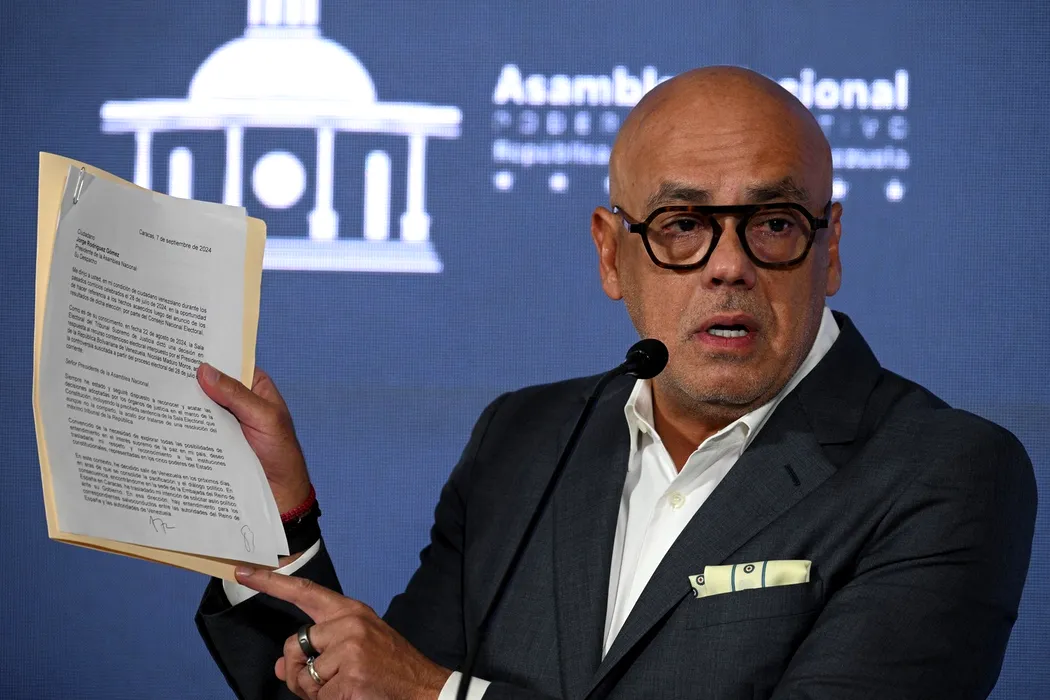 Jorge Rodríguez prezentând documentul semnat de Edmundo Gonzalez