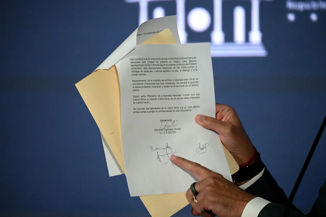 Jorge Rodríguez prezentând documentul semnat de Edmundo Gonzalez