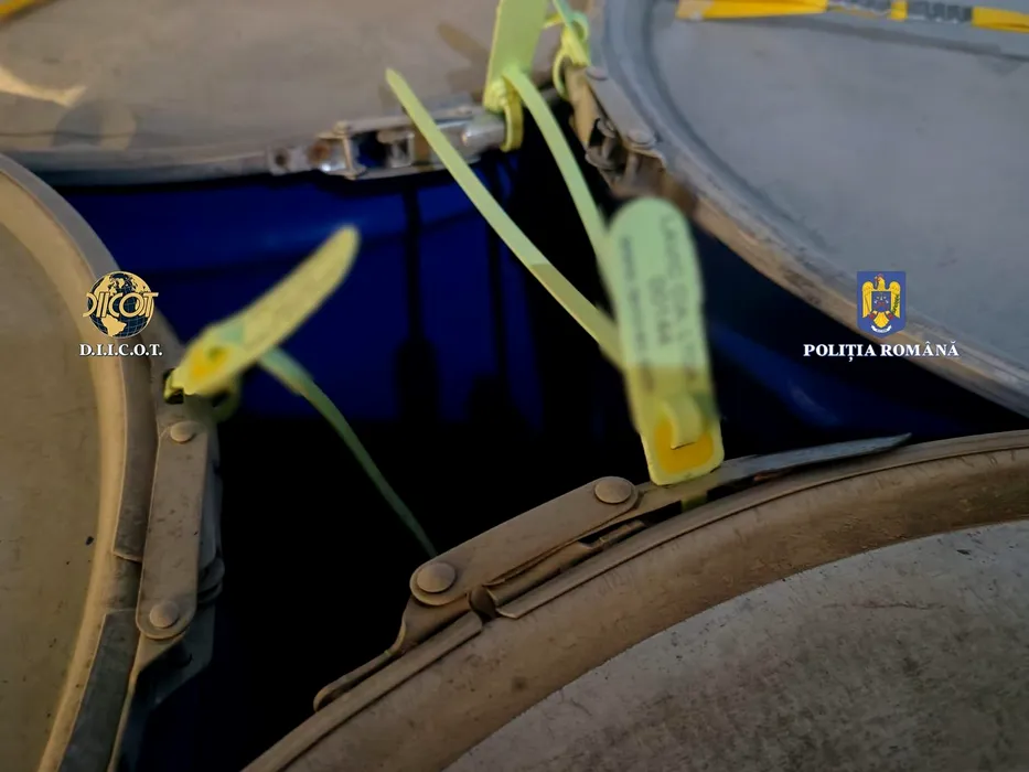 Captură record de COCAINĂ la Nădlac. Drogurile, ascunse în butoaie cu pulpă de fructe, au intrat prin Portul Constanța cu destinație Olanda