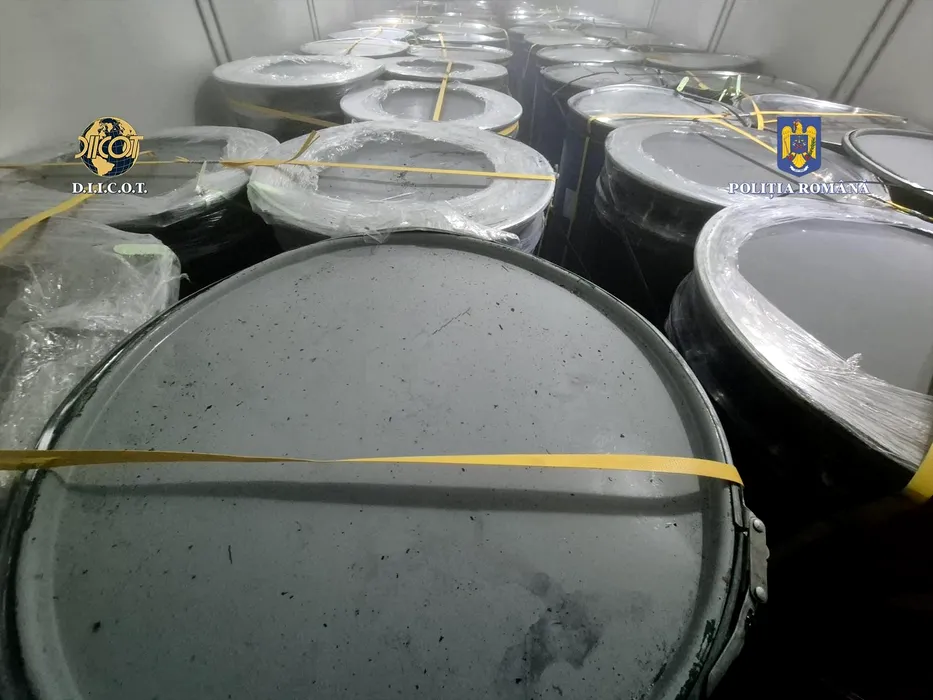 Captură record de COCAINĂ la Nădlac. Drogurile, ascunse în butoaie cu pulpă de fructe, au intrat prin Portul Constanța cu destinație Olanda