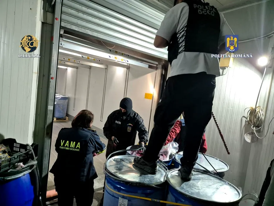Captură record de COCAINĂ la Nădlac. Drogurile, ascunse în butoaie cu pulpă de fructe, au intrat prin Portul Constanța cu destinație Olanda