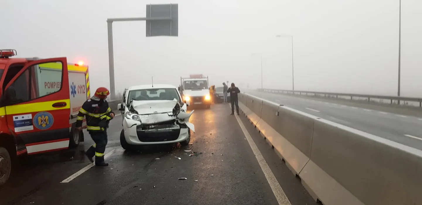 Carambol cu 23 de mașini pe centura ocolitoare a Brașovului. Patru persoane au fost rănite (FOTO)