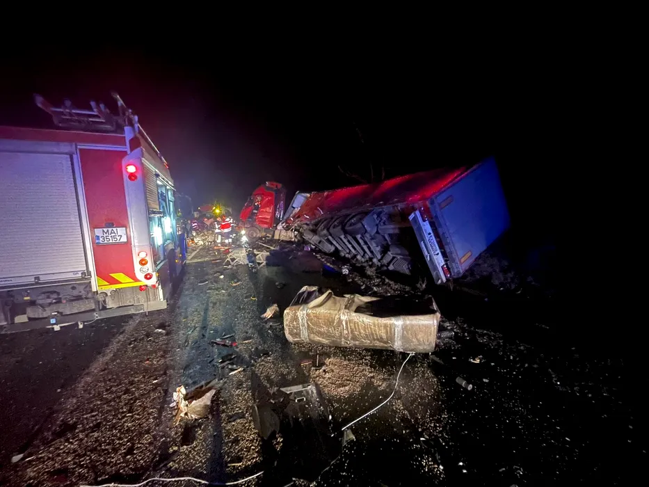 Carambol cu două TIR-uri și un autoturism pe DN6, în județul Caraș-Severin, soldat cu 4 morți și 2 răniți