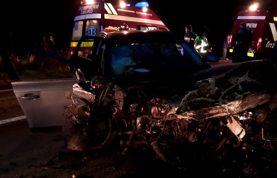 FOTO | Carambol cu trei mașini, pe un drum din Timiș. Șase persoane au fost rănite, printre care și copii