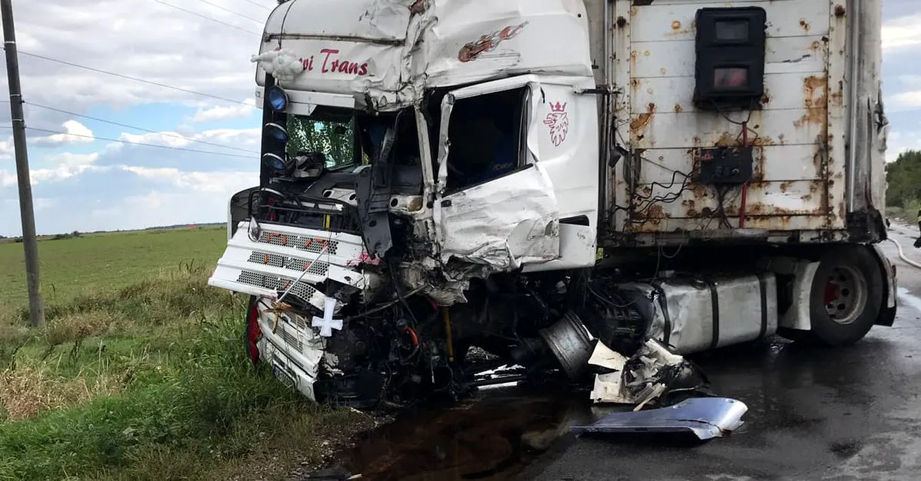 FOTO | Carambol cu un autoturism și două TIR-uri, pe un drum din Dâmbovița. „Sunt scurgeri de substanțe periculoase din recipientele transportate de unul dintre autotrenuri”