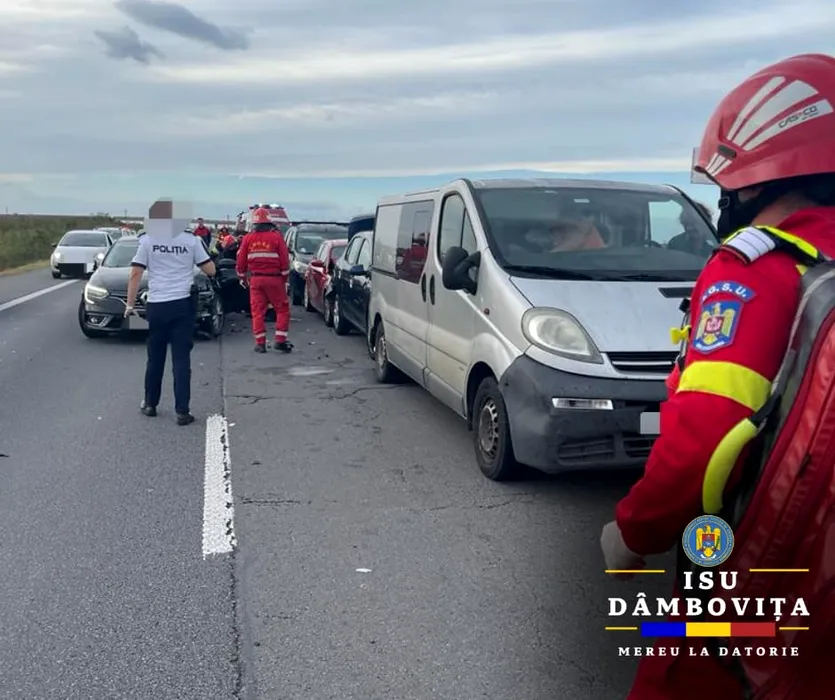 CARAMBOL cu zece mașini pe A1 Bucuresti-Pitești. Trafic oprit pe o bandă
