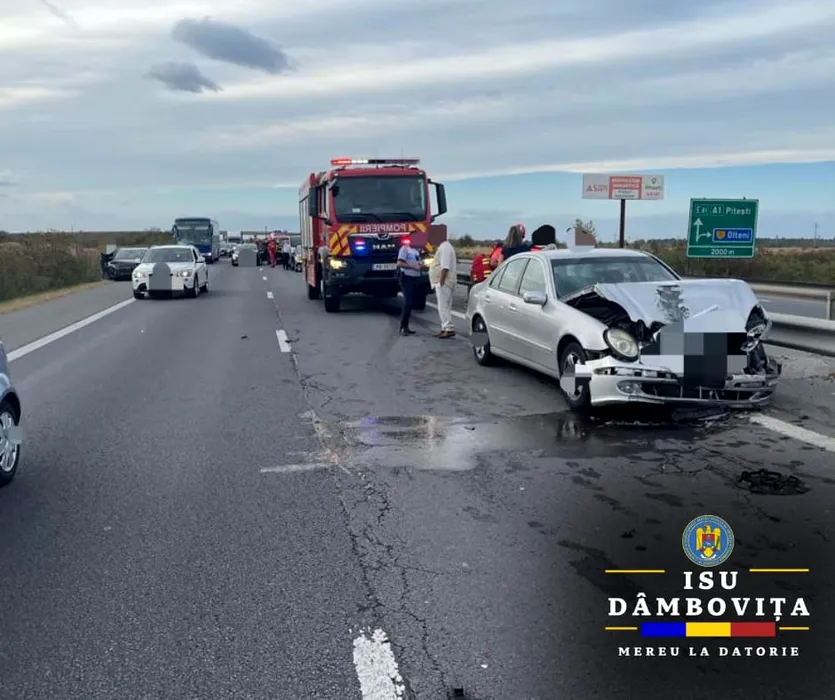 CARAMBOL cu zece mașini pe A1 Bucuresti-Pitești. Trafic oprit pe o bandă