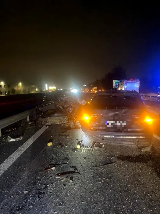 Carambol în miez de noapte pe A1. Patru autoturisme și două autoutilitare au fost implicate. Un șofer a rămas încarcerat