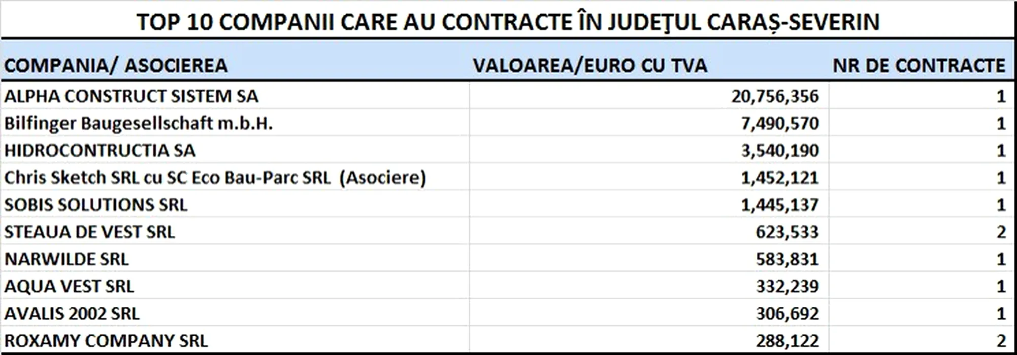CARAȘ-SEVERIN. Unde au mers banii publici în 2014. Topul firmelor care au contracte locale cu statul