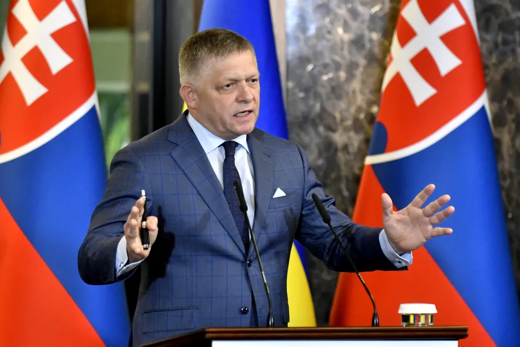 05 September 2025, Ukraine, Uzhhorod: Slovak Prime Minister Robert Fico speaks during a press conference with Ukrainian President Volodymyr Zelensky after their meeting. Photo: Roman Hanc/TASR/dpa