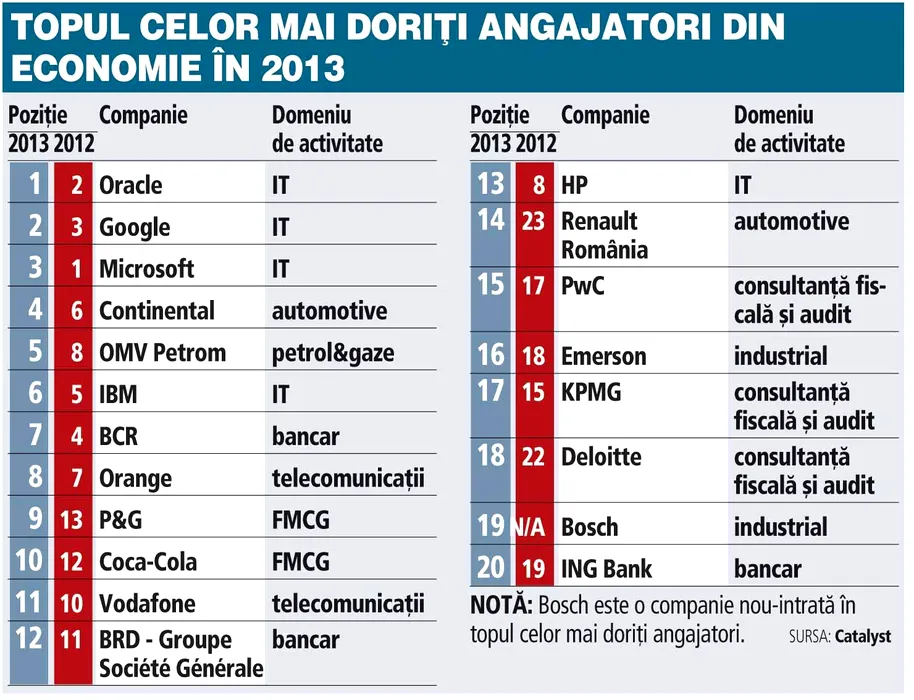 Care sunt cei mai doriți angajatori ai românilor în 2013