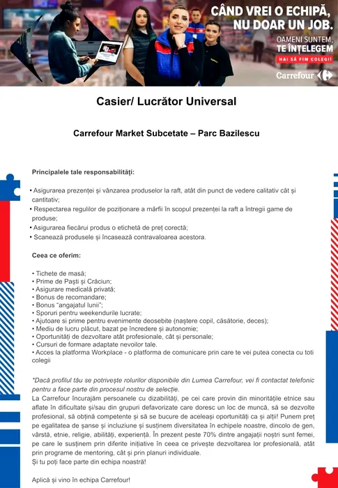 Carrefour oferă salarii de 6.500 – 10.000 LEI net, plus tichete de masă, abonamente și cupoane! Ce trebuie să știi să faci