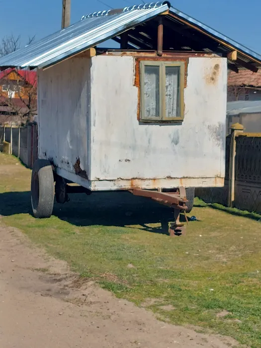 FOTO | Și-au făcut iarna car! De frica hoților, oltenii au inventat casa pe roți pentru paza recoltelor
