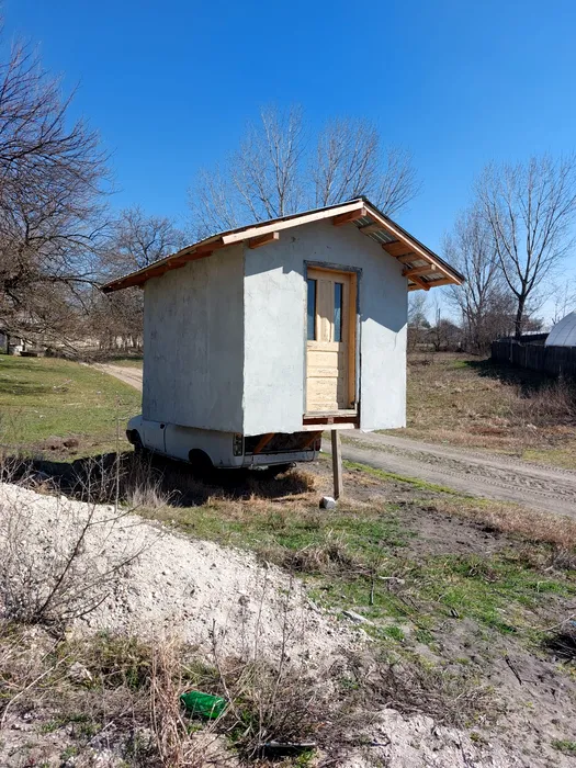 FOTO | Și-au făcut iarna car! De frica hoților, oltenii au inventat casa pe roți pentru paza recoltelor