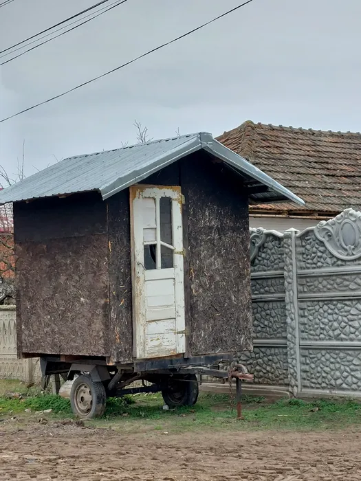 FOTO | Și-au făcut iarna car! De frica hoților, oltenii au inventat casa pe roți pentru paza recoltelor