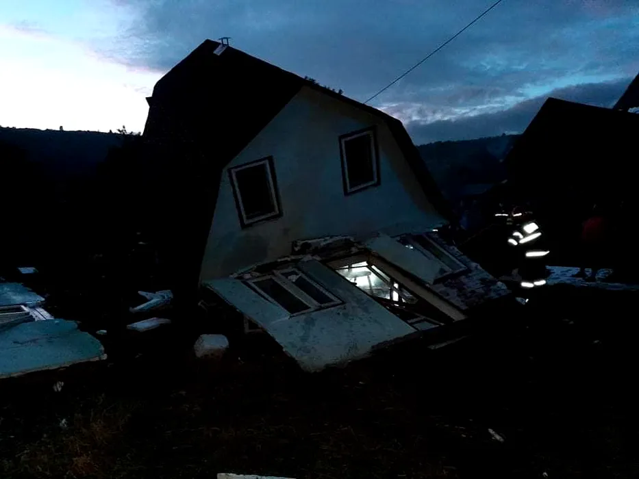 GALERIE FOTO: Casă spulberată de explozia unei butelii la Praid, în județul Harghita. O femeie și copilul ei au suferit arsuri grave