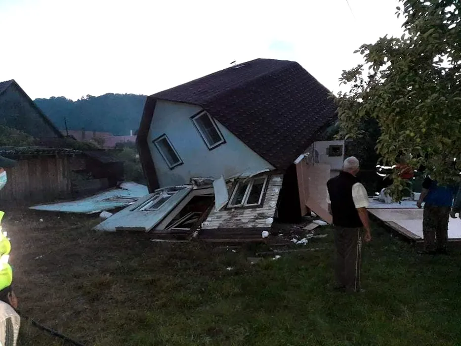 Casă spulberată de explozia unei butelii la Praid, în județul Harghita. O femeie și copilul ei au suferit arsuri grave