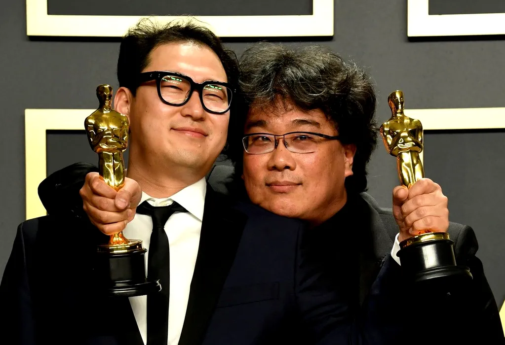 Han Jin-won and Bong Joon-ho with their Oscars for Best Original Screenplay, International Feature Film, Best Director, and Best Picture for Parasite in the press room at the 92nd Academy Awards held at the Dolby Theatre in Hollywood, Los Angeles, USA., Image: 497511562, License: Rights-managed, Restrictions: , Model Release: no, Credit line: Jennifer Graylock / PA Images / Profimedia