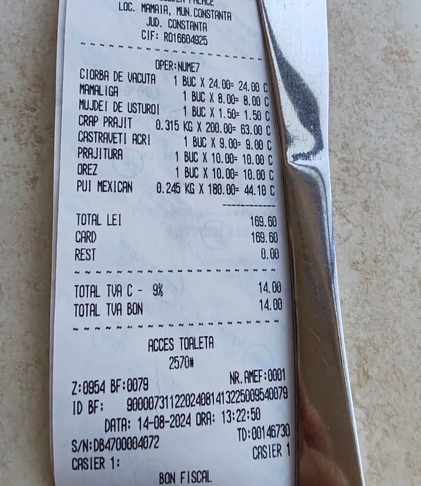 GALERIE FOTO: Cât a plătit o turistă pentru o ciorbă de văcuță, o porție de crap prăjit cu mămăligă și o savarină în stațiunea Mamaia, acum, în august 2024