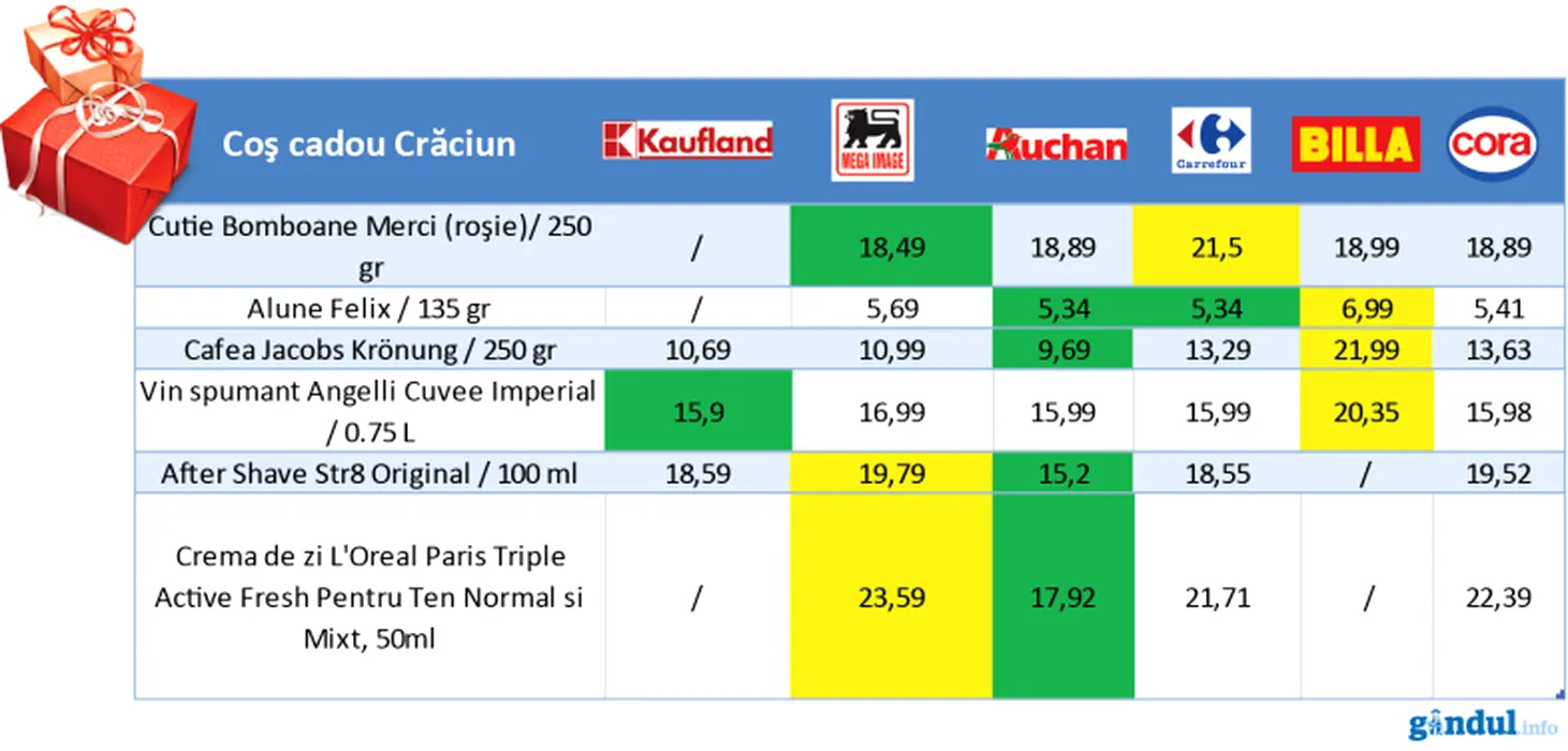 Cât costă ACELAȘI COȘ DE PRODUSE în Auchan, Billa, Carrefour, Cora, Kaufland și Mega Image în Ajunul Crăciunului