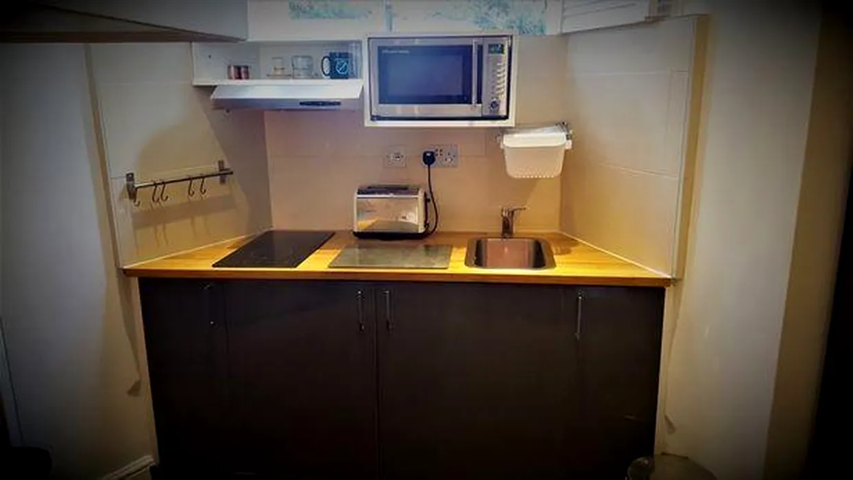 Cât costă chiria într-o garsonieră în care nu poate locui decât o singură persoană. Patul e suspendat deasupra canapelei, din cauza spațiului îngust