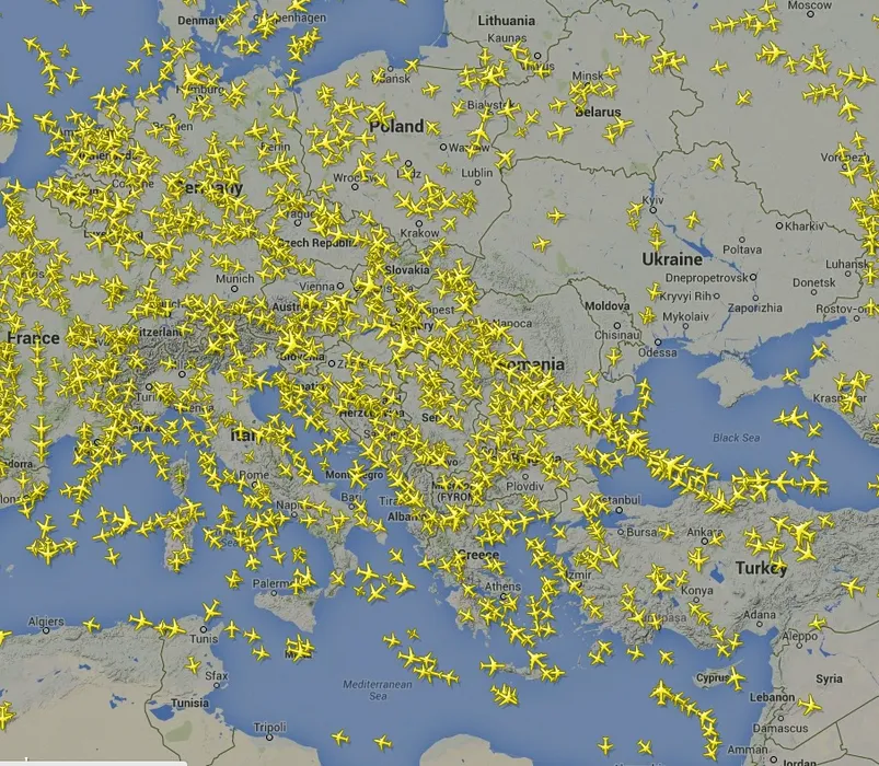 Câte avioane trec în acest moment pe deasupra României. După tragedia din Ucraina, traficul aerian a crescut cu 15%