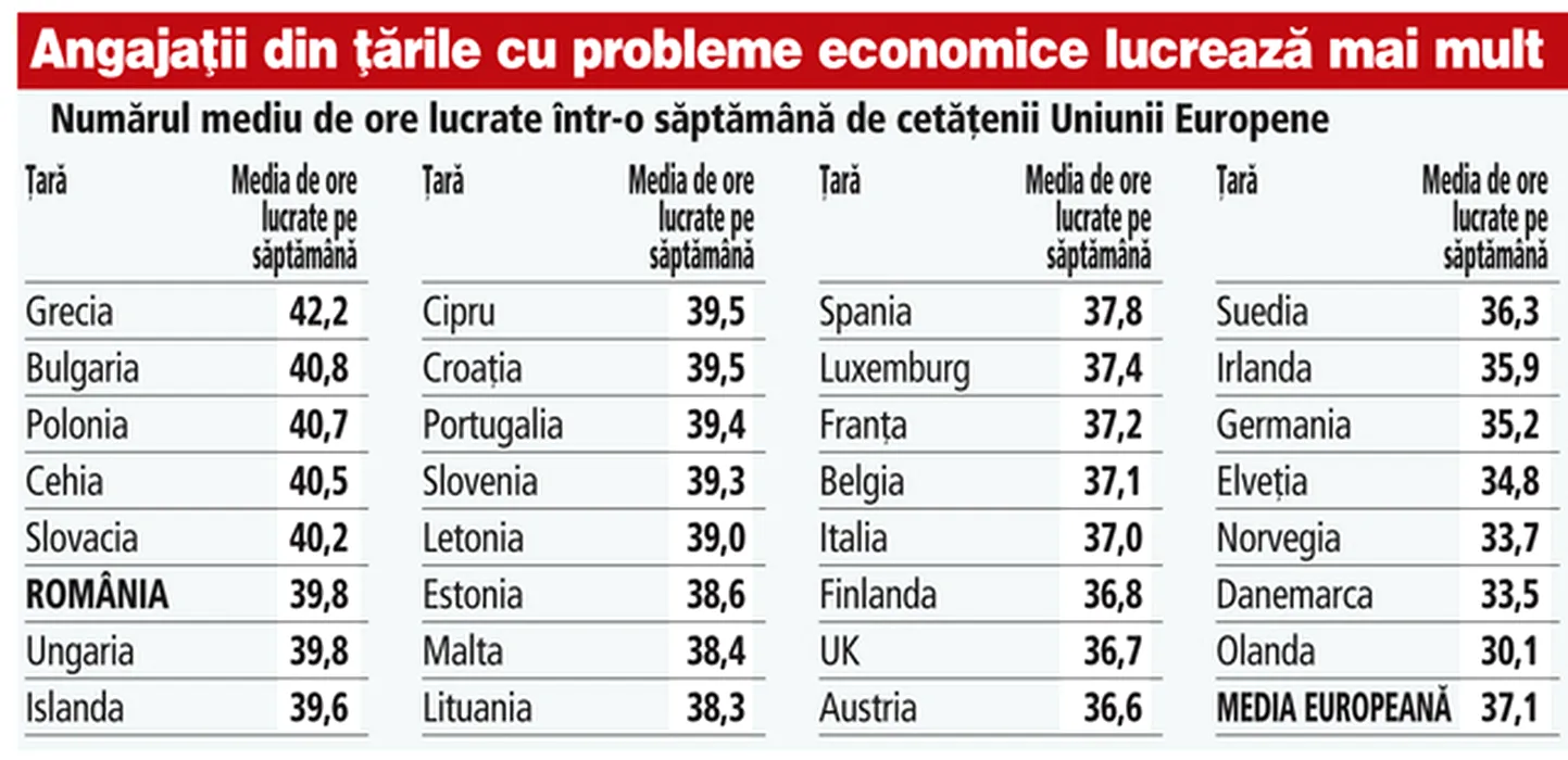 Câte ore lucrează pe săptămână un român. Care este media europeană