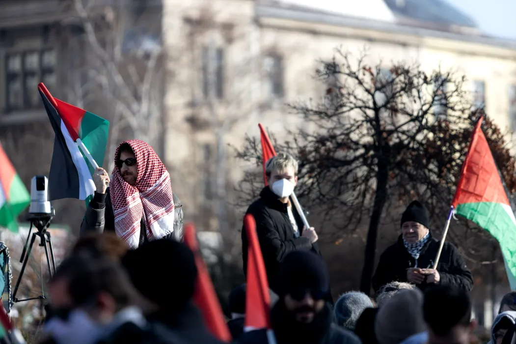 Câteva sute de partizani ai cauzei palestiniene au defilat prin București. Participanții au fost „percheziționați” de jandarmi și filmați de SRI