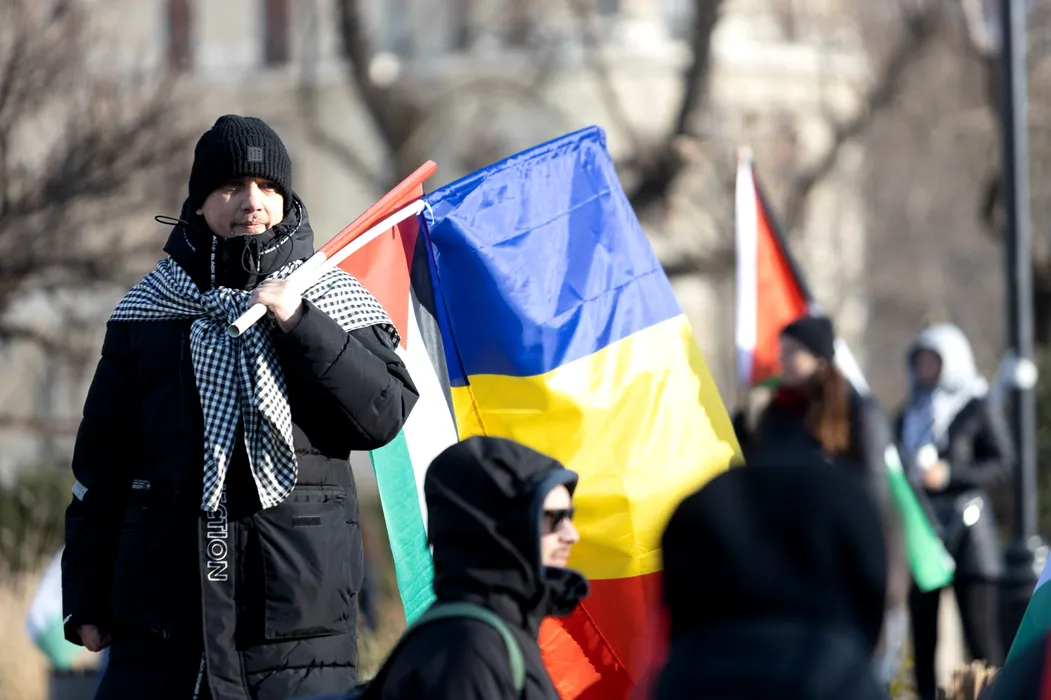 Câteva sute de partizani ai cauzei palestiniene au defilat prin București. Participanții au fost „percheziționați” de jandarmi și filmați de SRI