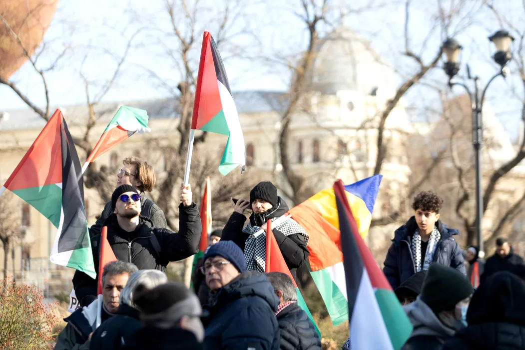 Câteva sute de partizani ai cauzei palestiniene au defilat prin București. Participanții au fost „percheziționați” de jandarmi și filmați de SRI
