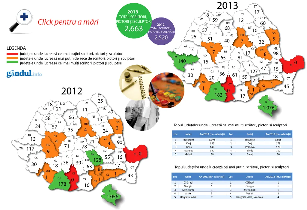 Câți artiști cu contract de muncă trăiesc în România. Orașele în care nu locuiește niciun scriitor