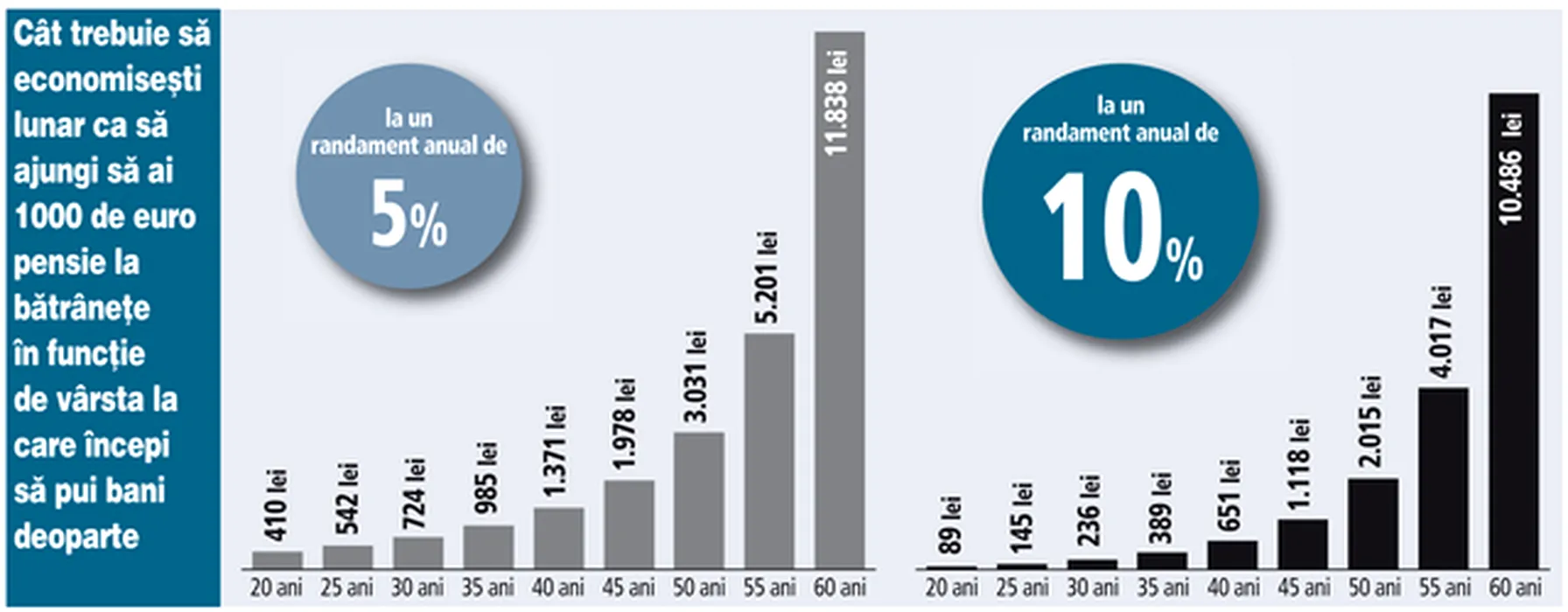 Câți bani trebuie să economisească un român în fiecare lună pentru a avea o pensie de 1.000 euro