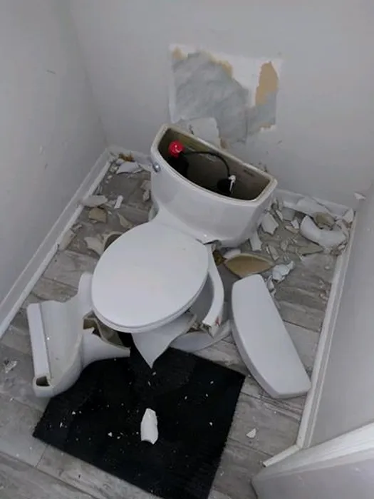 Caz unic pentru o echipă de instalatori. Toaleta unei familii a explodat după ce fosa septică din curte a fost lovită de un fulger