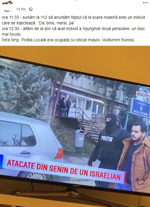 Cazul celor două femei înjunghiate în plină stradă | Mesaj pe rețelele de socializare: La 11:33 am sunat la 112, un bărbat se injectează apoi am aflat că a atacat două femei / Autoritățile: Persoana în cauză nu a fost observată