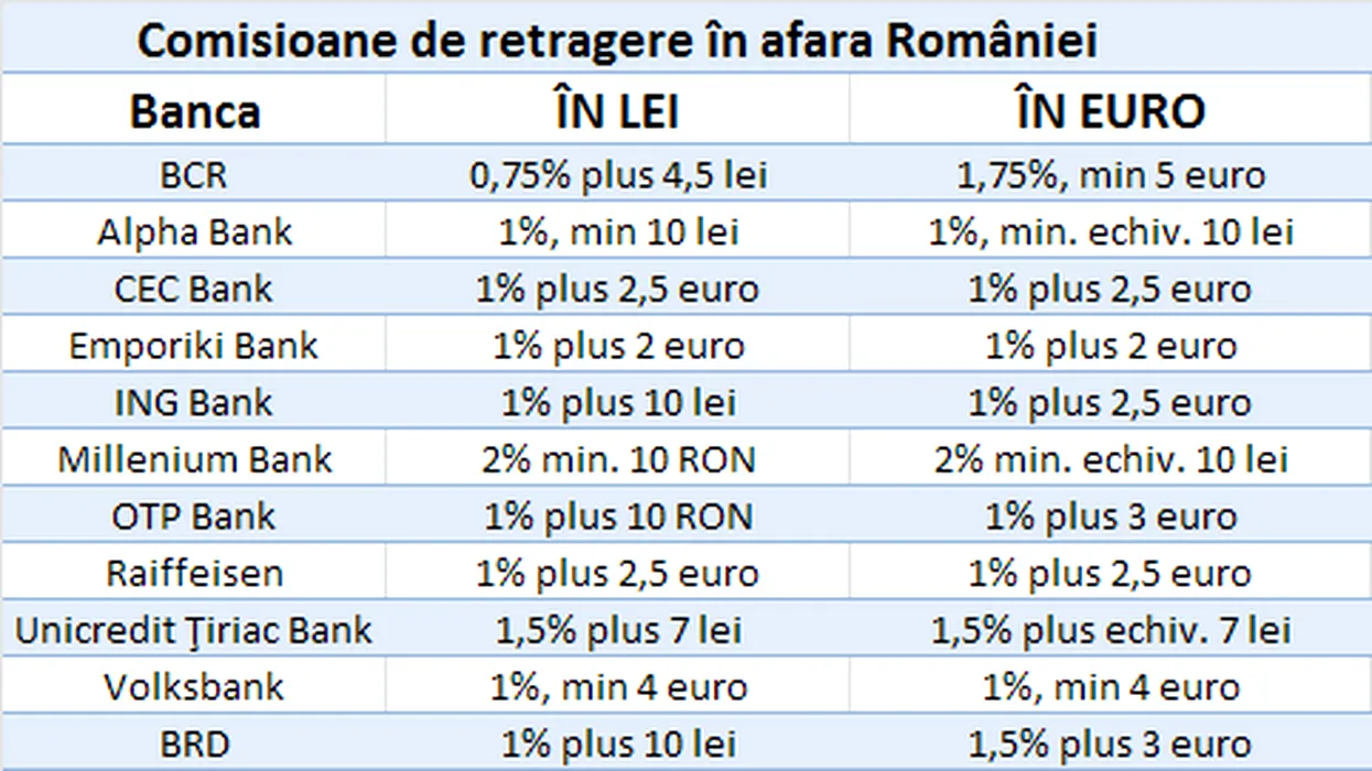 Ce comisioane percep băncile românești atunci când scoți bani de pe card în străinătate
