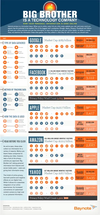 GALERIE FOTO: Ce date despre utilizatori colectează Google, Facebook, Yahoo! și Apple