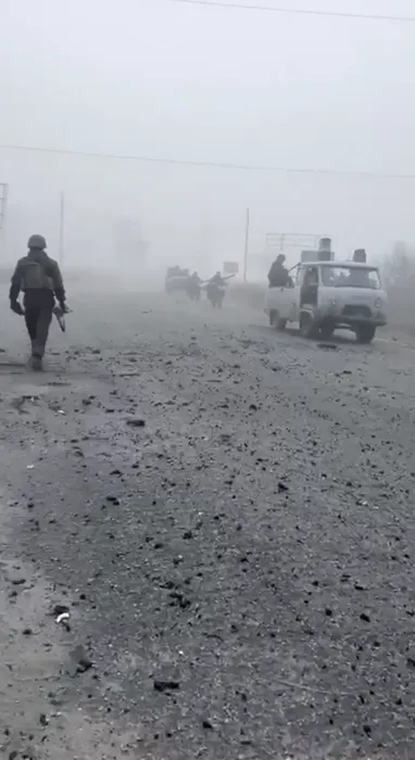Footage - purporting to be from Pokrovsk - showed Putin’s motorcycle army pressing forwards on war-torn roads in Donetsk region.,Image: 1051820088, License: Rights-managed, Restrictions: ***