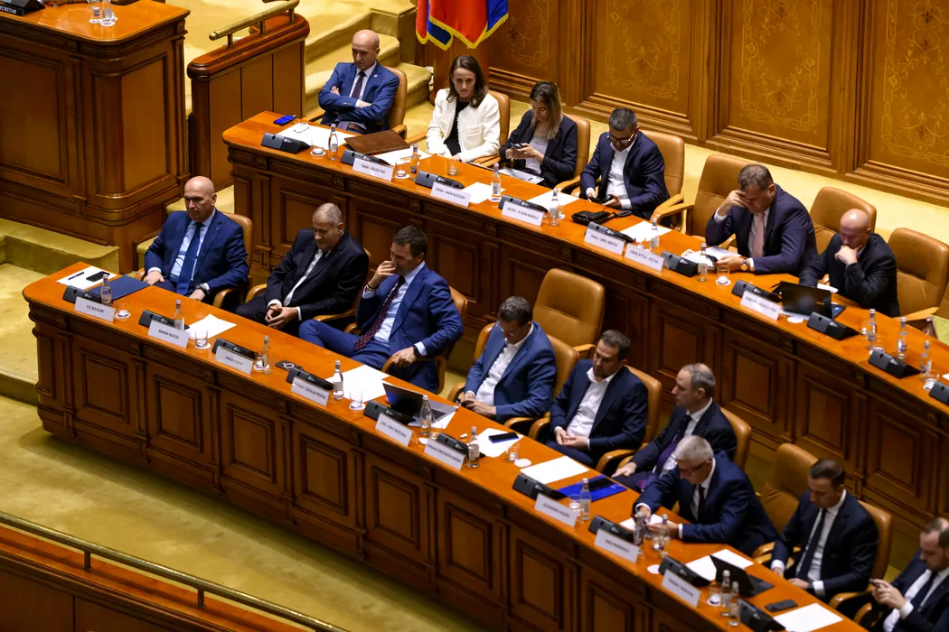 Ministrii Cabinetului Bolojan participa la sedinta comuna a Senatului si Camerei Deputatilor pentru dezbaterea celor patru motiuni de cenzura depuse de AUR, S.O.S. Romania si POT la adresa Guvernului, dupa angajarea raspunderii pe cinci proiecte de lege ce cuprind masurile din pachetul doi de reforma, duminica, 7 septembrie 2025, la Palatul Parlamentului din Bucuresti. ALEXANDRU DOBRE / MEDIAFAX FOTO