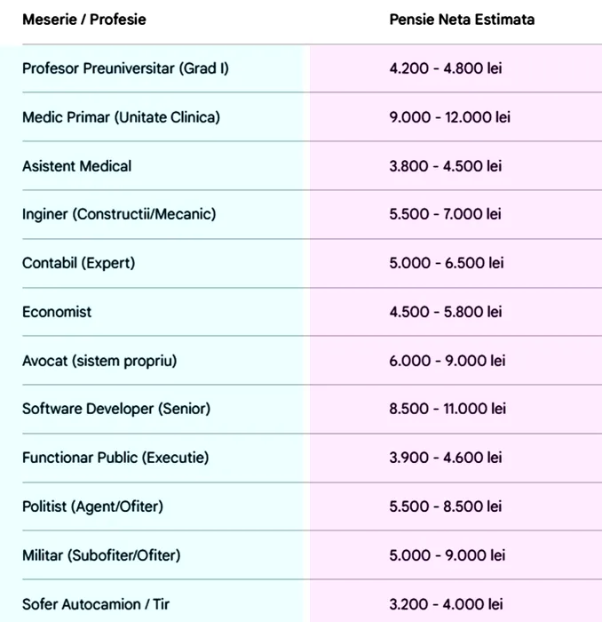 Ce pensie o să primești pentru meseria ta, dacă ai lucrat 38 de ani cu carte de muncă. Tabel complet pentru 25 de profesii populare în România