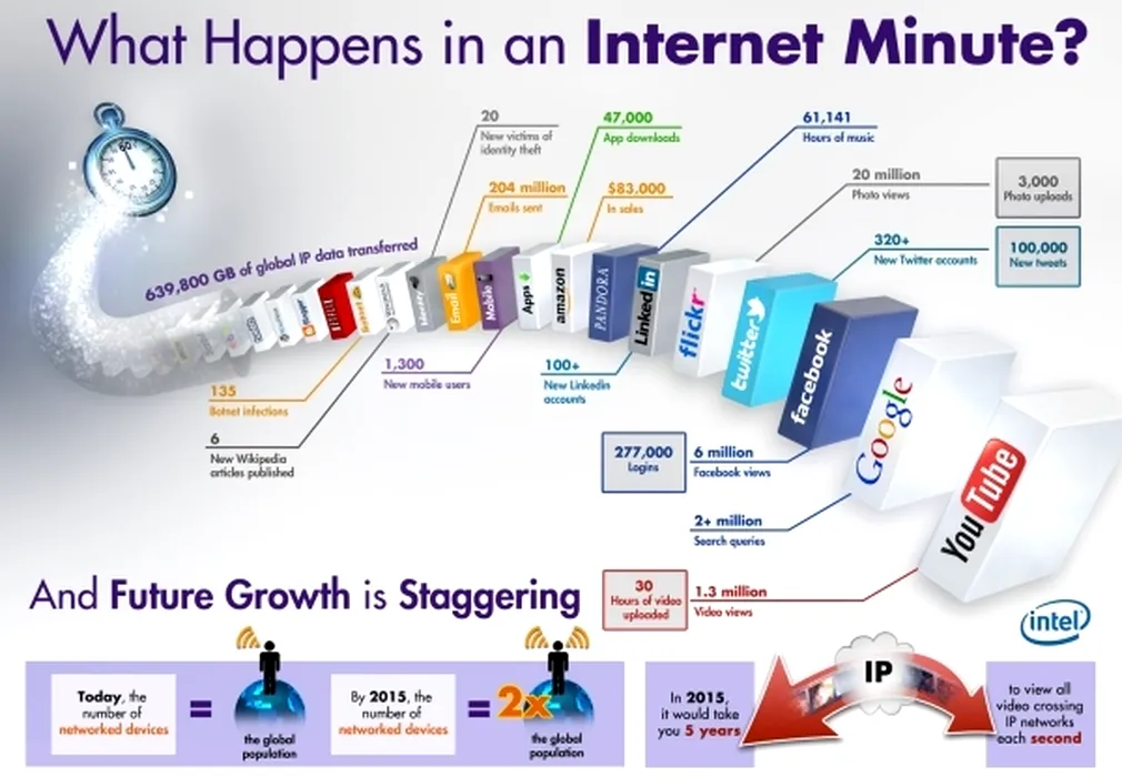 Ce se întâmplă în fiecare minut pe Internet: 204 milioane de emailuri trimise și 1,3 milioane de clipuri vizualizate pe YouTube