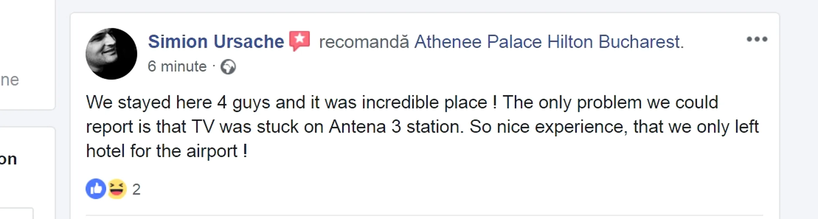 GALERIE FOTO: Cei patru ASASINI misterioși care s-ar fi cazat la Athenee Palace Hilton, VEDETE pe pagina de Facebook a hotelului: „Mă scuzați. M-am cazat aici acum un an. Ați găsit cumva un pistol sub pat?”. Cele mai amuzante ironii pe tema presupusei TENTATIVE DE ASASINAT care l-ar fi vizat pe Dragnea