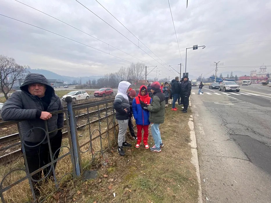 În apropierea locului accidentului/Bărbatul cu glugă este antrenorul copiilor