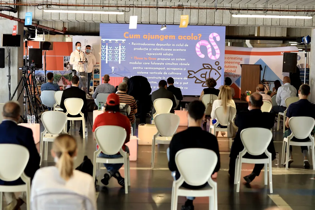 Proiectul „Agricultura Circulară în Universitatea Mea – A.C.U.M.” de transformare a cantinei studențești Moxa în grădină urbană, pus la punct de trei studenți de la Facultatea de Economie Agroalimentară şi a Mediului din cadrul ASE, a convins un juriu format din profesionişti de top din cadrul unor organizaţii din România şi Olanda / Sursă foto: Tudor Communication
