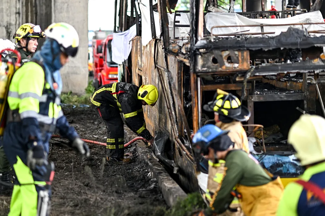 GALERIE FOTO: Cel puțin 23 de morți după ce un autocar plin cu elevi a luat FOC în Thailanda