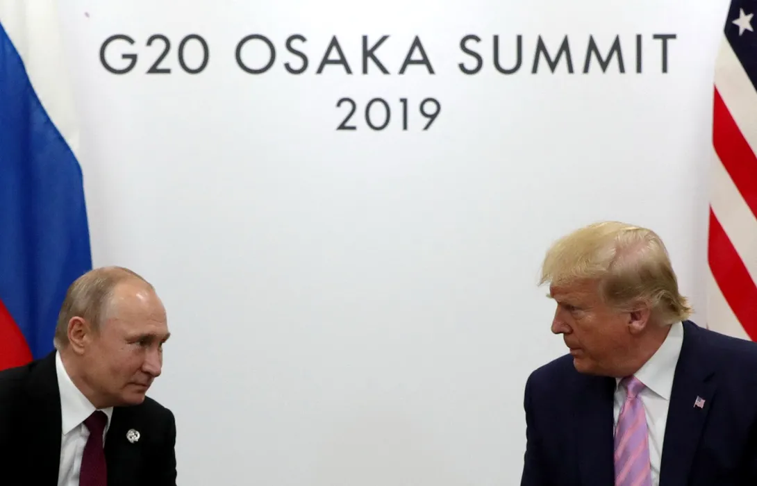 (FILES) Russian President Vladimir Putin and US President Donald Trump hold a meeting on the sidelines of the G20 summit in Osaka on June 28, 2019. US President Donald Trump and Russian counterpart Vladimir Putin could meet for a summit as early as next week, the Kremlin said on August 7, 2025. The meeting would be the first between a sitting US and Russian president since Joe Biden met Putin in Geneva in June 2021, and comes as Trump seeks to broker an end to Russia's military assault on Ukraine.,Image: 1028108301, License: Rights-managed, Restrictions: , Model Release: no