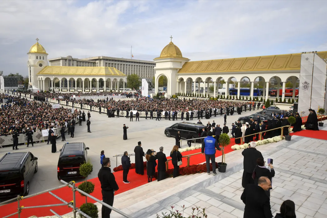 Credinciosi asista la slujba de sfintire a picturii Catedralei Nationale din Bucuresti, oficiata de PF Daniel, Patriarhul Bisericii Ortodoxe Romane (BOR), si Patriarhul Ecumenic Bartolomeu I, duminica, 26 octombrie 2025. ALEXANDRU DOBRE / MEDIAFAX FOTO