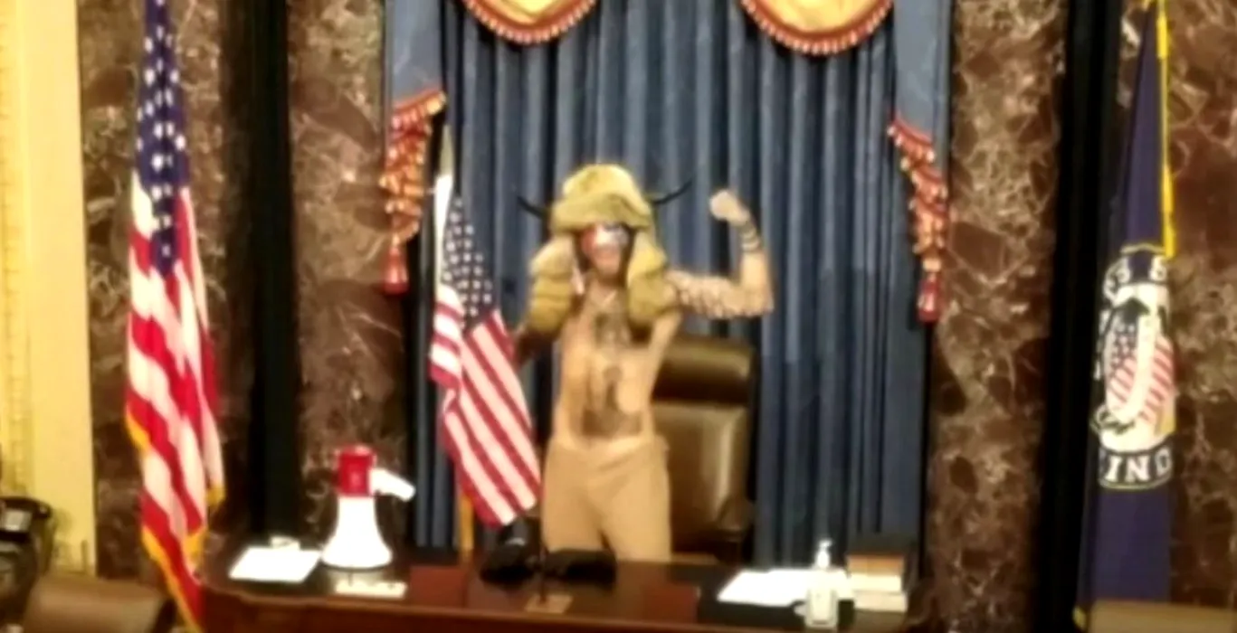 Celebrul protestatar dezbrăcat și cu coarne de la Capitoliu a fost arestat! „Acest individ era înarmat cu o lance de doi metri lungime, cu un drapel american ataşat chiar sub lamă” / Cine este Jake Angeli