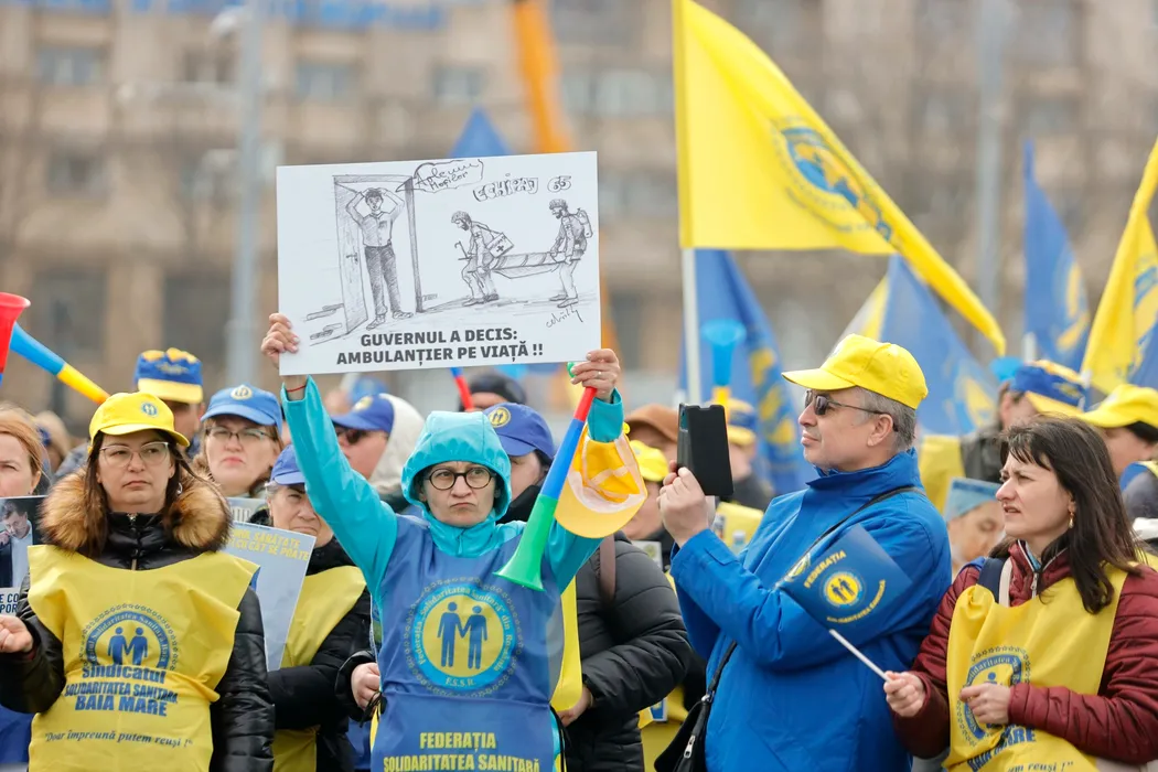 Centrul Capitalei BLOCAT / 5000 de membri ai Federației „Solidaritatea Sanitară” protestează la Guvern și la Parlament