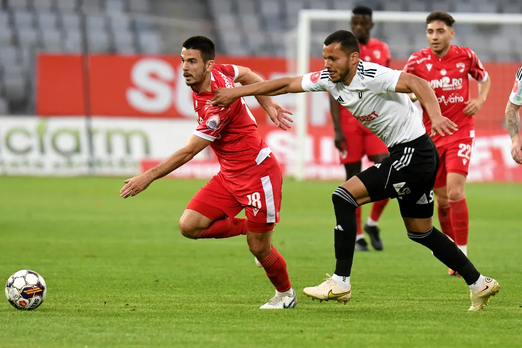 Domagoj Pavicic și Kelven Da Silva Thalisson în meciul de fotbal dintre FC Universitatea Cluj și Dinamo București contând pentru Superliga Superbet Play-Out, desfășurat pe Stadionul CLUJ ARENA din Cluj-Napoca, sâmbătă 4 mai 2024. © FOTO: Flaviu BUBOI/SPORT PICTURES