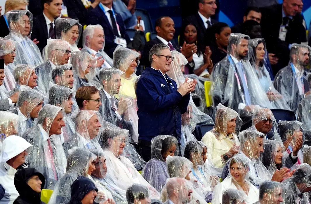 Prime Minister Sir Keir Starmer applauds the Great Britain team during the opening ceremony of the Paris 2024 Olympic Games at the Trocadero in Paris, in France. Picture date: Friday July 26, 2024.,Image: 892722071, License: Rights-managed, Restrictions: Use subject to restrictions. Editorial use only, no commercial use without prior consent from rights holder., Model Release: no